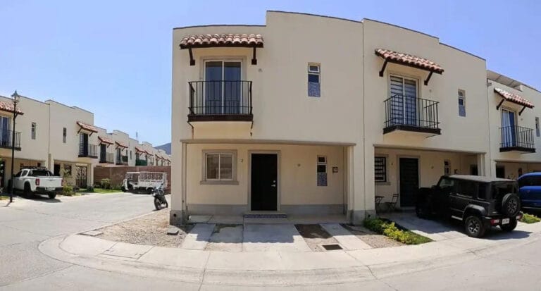 Terreno 330 m² (10 × 33) con construcción 310 m² en 2 niveles. PB: cochera 2 autos, sala, comedor, cocina con antecomedor, estudio con baño completo, jardín. PA: distribuidor-estar TV, 3 recámaras con clóset/vestidor, 3 baños completos.